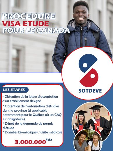 Obtention de la lettre d'acceptation de l'établissement, obtention de l'autorisation d'étudier dans la province, dépôt de la demande de permis d'études, données biométriques et visites médicales